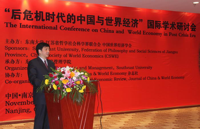 由中国世界经济学会、国产探花 和江苏省社科联共同主办,国产探花 承办,《国际经济评论》与China & World Economy杂志社协办的“后危机时代的中国与世界经济”国际学术研讨会于2009年11月21-22日在我校九龙湖宾馆如期举行。会议邀请了100余名海内外相关领域的著名学者到会发表专题演讲和研讨。南京社科领域、兄弟院校、我校师生约300人参会。