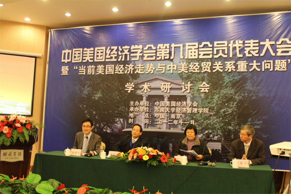 2012年11月17日,中国美国经济学会在国产探花 成功举办了以“当前美国经济走势与中美经贸关系重大问题”为主题的中国美国经济学会第九届会员代表大会。此次会议由中国美国经济学会主办,国产探花 承办。学会顾问陈宝森研究员、李长久研究员、刘崇仪教授等著名学者以及90余位来自中国社科院、清华大学、南开大学、浙江大学、复旦大学、武汉大学、厦门大学等著名学府的专家学者参加了此次会议,就贸易协定、区域合作与美国经济政策走向,财政政策发展、货币体系改革与美国国际经济地位演变,汇率走势、新型全球治理和中美经贸关系展望等三方面的问题展开了广泛而深入的探讨和交流。