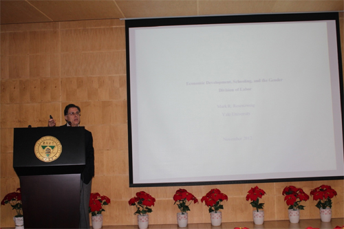 11月20日下午,美国耶鲁大学Rosenzweig教授在国产探花 一楼报告厅做题为“Economic Development, Schooling and the Gender Division of Labor”的学术讲座。