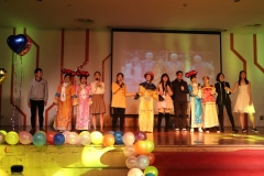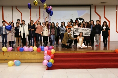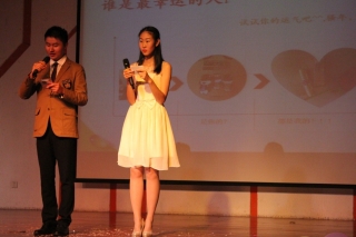 英俊的男主持和温婉的女主持人缓缓移步舞台,灯关亮起,一一介绍了莅临晚会的嘉宾之后,晚会在一片热烈的掌声中正式开始。管工班的合奏尤克里里,All of me传达出恋爱中的美好,让大家为相遇而感到庆幸和期待;金融班结合提炼了国产探花 两个月的研究生生活,生动幽默的三句半逗起大家的阵阵笑声,现场轻松而活跃;管工班和会计班唱起了情歌,管工班的王殿元和罗一鸣对歌曲的完美演绎在现场圈粉无数,男女深情对唱珊瑚海也引起了大家对爱情的共鸣;会计班和金融办的同学的《春到湘江》将晚会带入了另一个古朴文艺的氛围,竹笛声声,书法字画,全场带着惊羡和赞叹,沉醉在这美丽的湘西生活;应用经济学班的同学就为我们带来了歌剧童年,婉转的越南语和婉约越南奥黛,如同童年一般,美好静好;物流班的合唱就传达出每个人对于相逢的喜悦,同心共勉,九龙湖,同窗的你,是我的小幸运;应用经济学班与金融班的这首《青春修炼手册》,活力四射,更有可爱的熊本送福利,欢乐渲染了整个会场;校研会文化部带来的傣族舞《朵儿朵》更是美轮美奂。