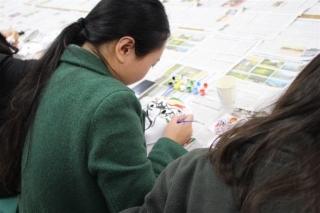 一个小时的比赛时间很快结束,大家纷纷自拍自己的脸谱发至朋友圈集赞,最后集赞最多的三人获得人气奖。