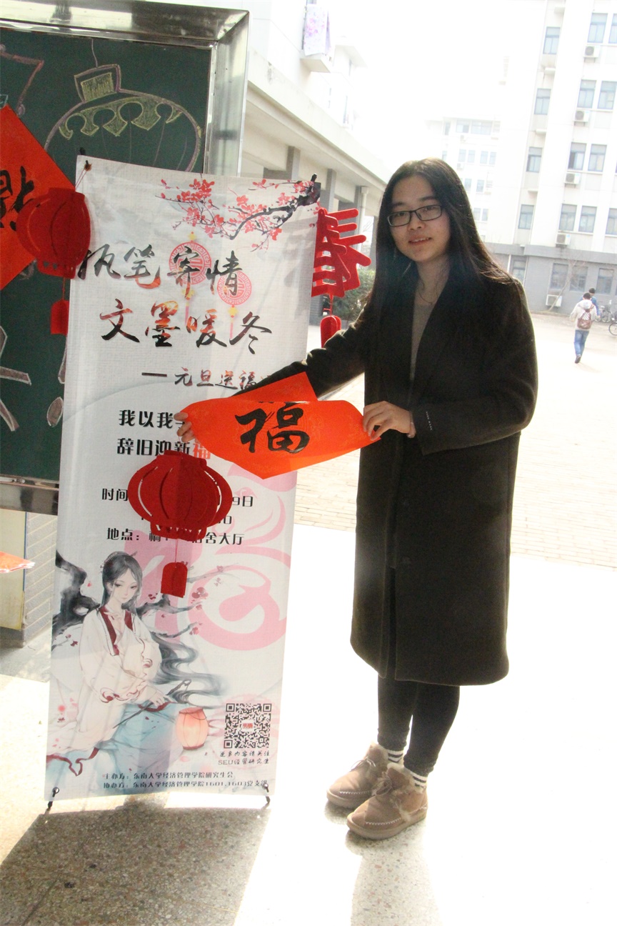 2016年12月29日,国产探花 研究生会和1601、1603党支部合作,借新春之际,趁着阳光明媚,在橘1-4大厅举办了“执笔寄情,文墨暖冬”元旦送福活动,得到了同学们的大力支持和热烈响应。