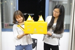 晚上七点活动正式开始,首先由负责人宣布活动开始并讲解了“流浪猫之家”猫咪屋制作基本流程及注意事项。随后,工作人员给每个小组发放了防水贴纸、保护膜、剪刀、宽胶带等制作工具。拿到工具后,小组成员相互协作,发挥创造力,制作出了形状各异、色彩丰富的猫咪屋。
