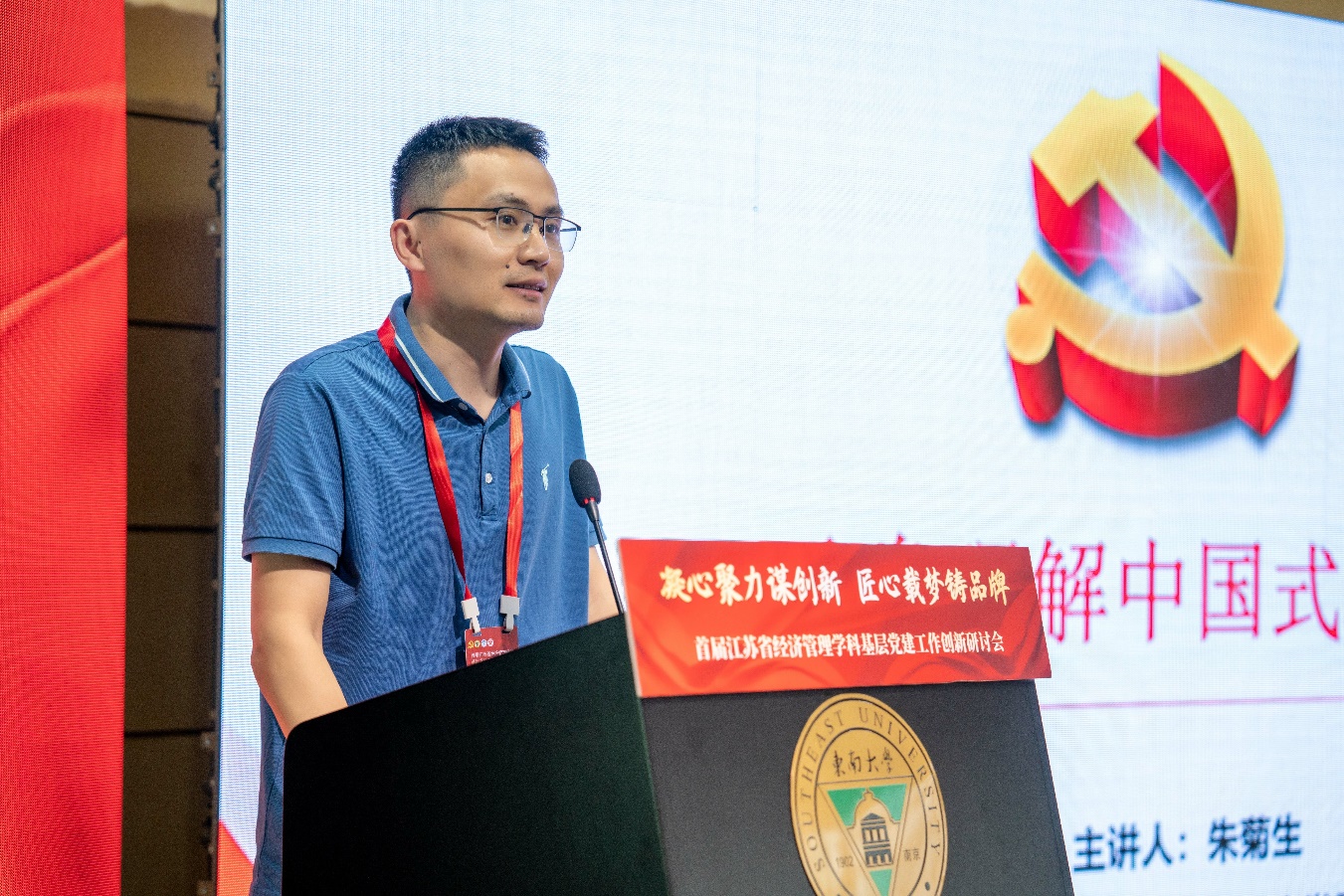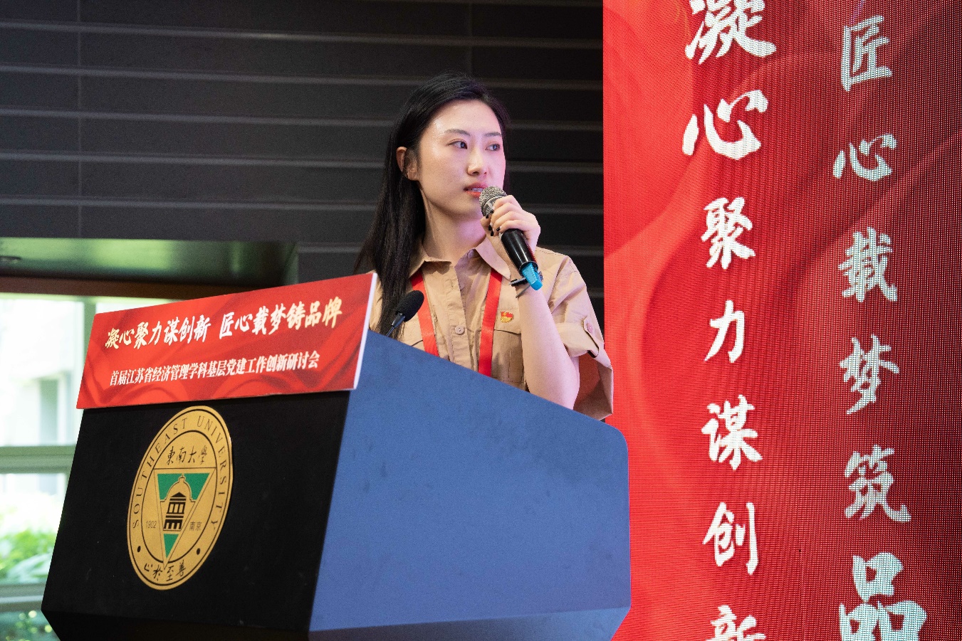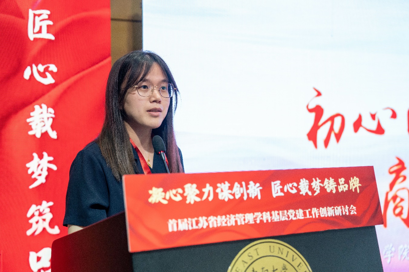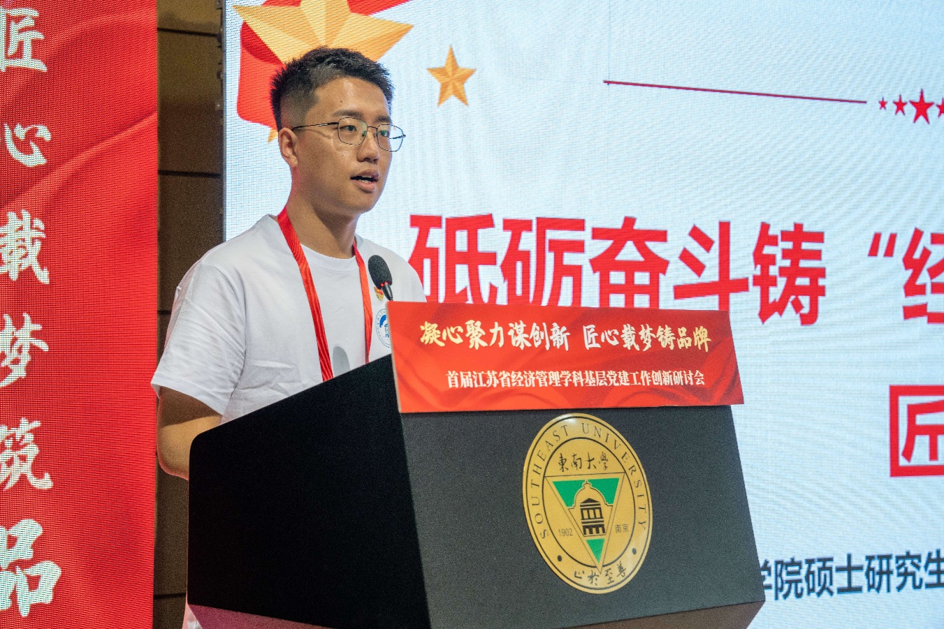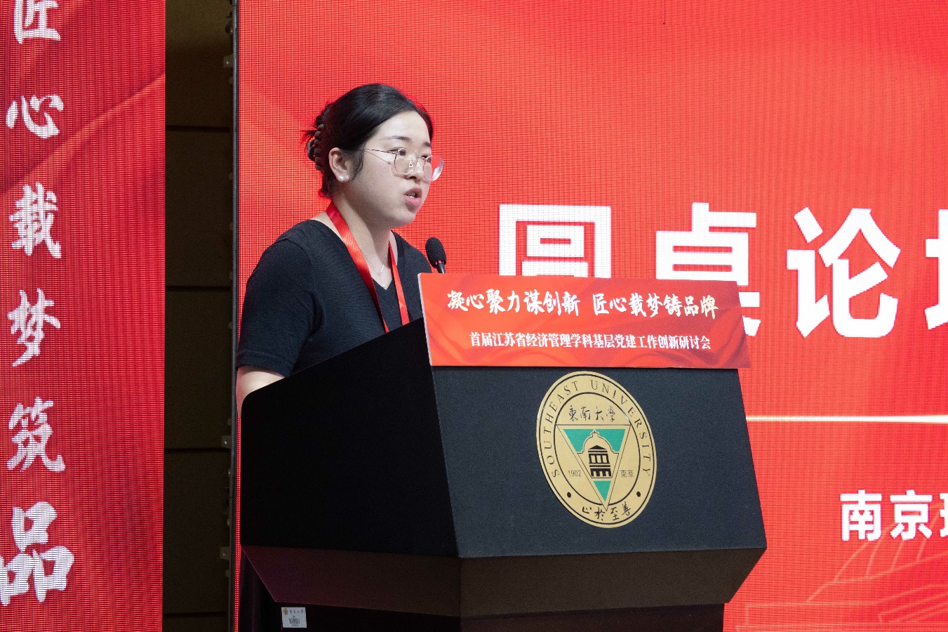 在主旨报告环节,教工党支部代表南京林业大学朱海星以“‘助力乡村振兴与实践育人相结合’的支部建设”、本科生党支部代表河海大学王晓莹以“初心向党小红‘贸’ 共‘商’未来砥砺行”、硕士生党支部代表国产探花 黄文泽以“砥砺奋斗铸‘经’彩 匠心凝聚谱新篇”、博士生党支部代表南京大学裴益莹以“守正创新担使命 踔厉奋发谱新篇——以党建引领管理学科发展”为题,分别作了大会主旨报告,引发了与会代表的深入思考和交流。