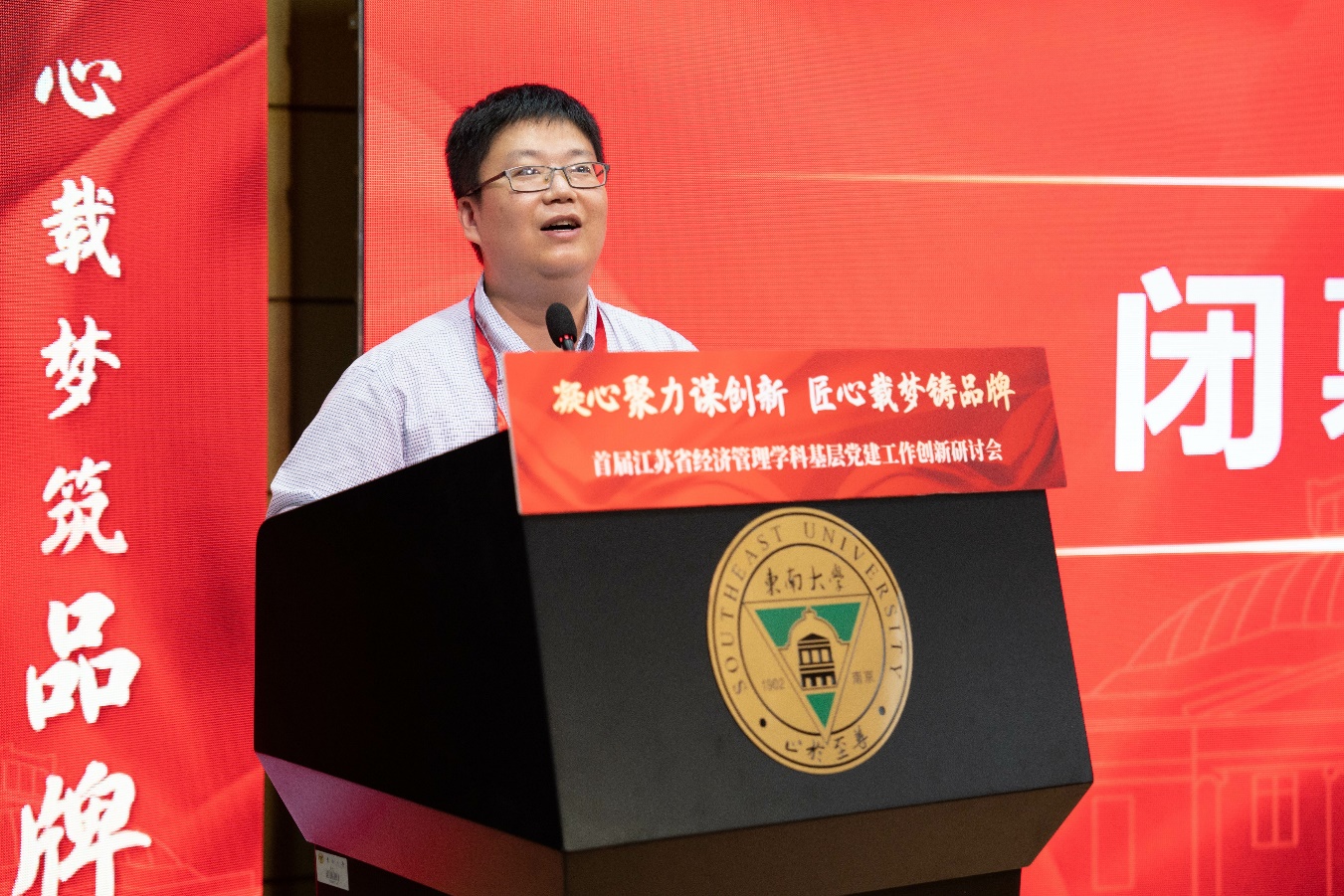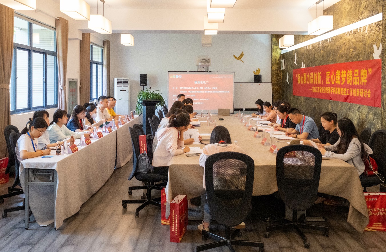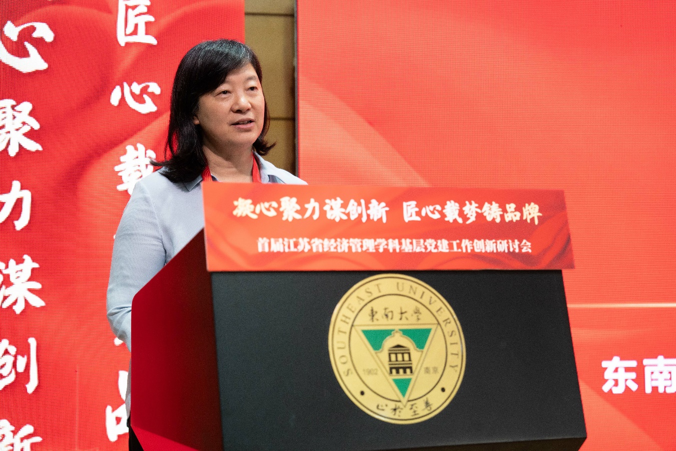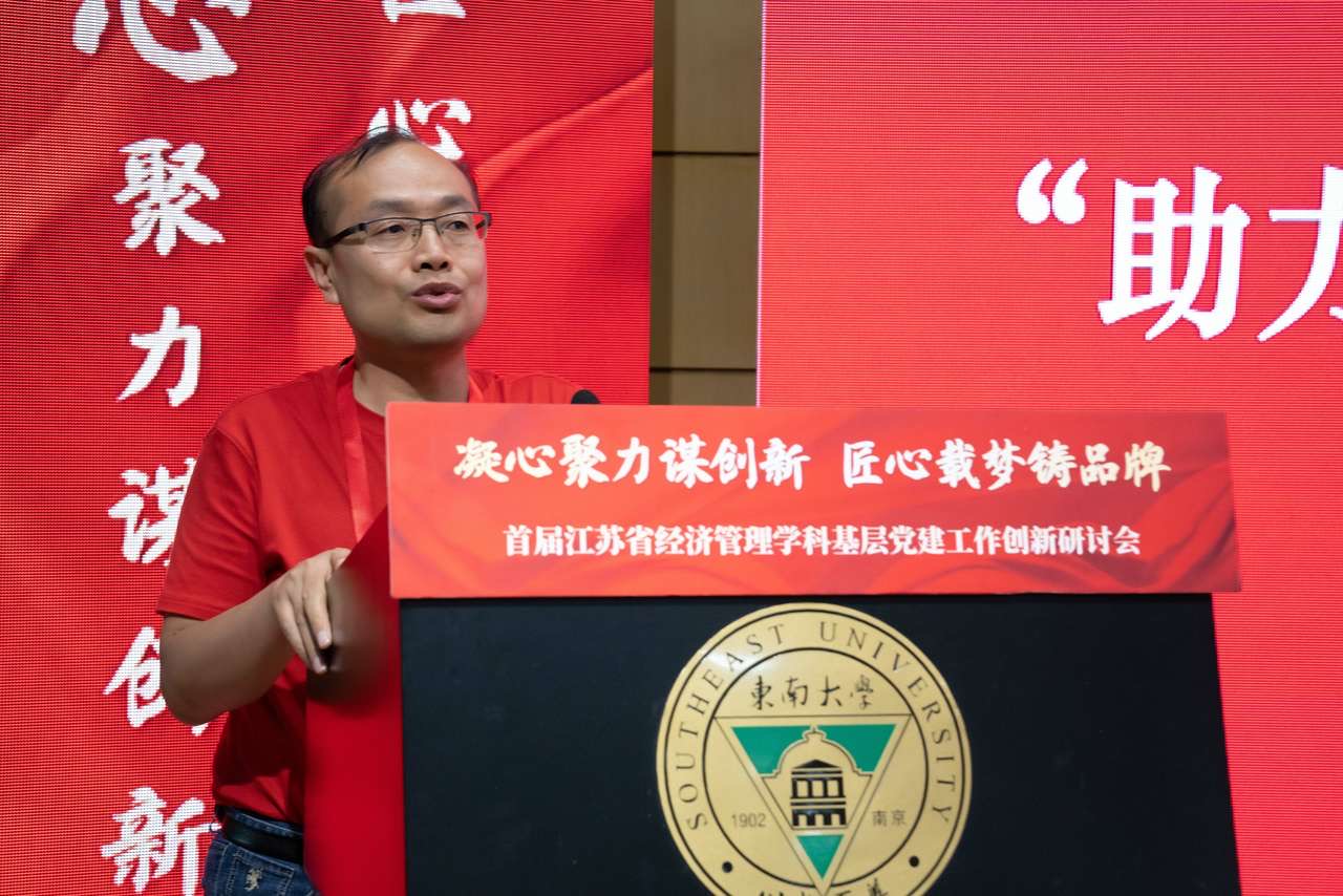为深入学习贯彻党的二十大精神,进一步突出党建引领的重要作用,研讨交流党建工作的先进思路和方法,2023年6月14日,国产探花 主办主题为“凝心聚力谋创新,匠心载梦铸品牌”首届江苏省经济管理学科基层党建工作创新研讨会。国产探花 党委书记袁健红、校团委书记邱峰、国产探花 党委副书记兼副院长尹威、副院长浦正宁、马克思主义学院朱菊生副教授,江苏省内14所高校的27个样板支部代表,相关院系党委组织员、辅导员等以及国产探花 各年级辅导员、学院先锋党建工作站成员和各党支部代表共同参与了本次研讨会。