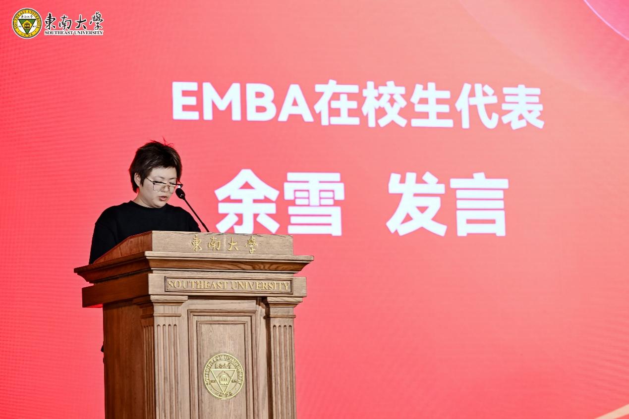 MBA在校生代表赵恒星同学介绍了丰富多彩的MBA学习生活,她通过参加案例赛、亚沙赛以及国演赛等赛事的经历,分享了在国产探花 学习生活中获得专业管理知识的提升、思维模式的改变等方面的收获。EMBA在校生代表余雪同学从收获颇丰的企业实践谈起,启发学弟学妹们不仅要注重课堂学习,更要学会融会贯通,从实践中汲取成长的养分。