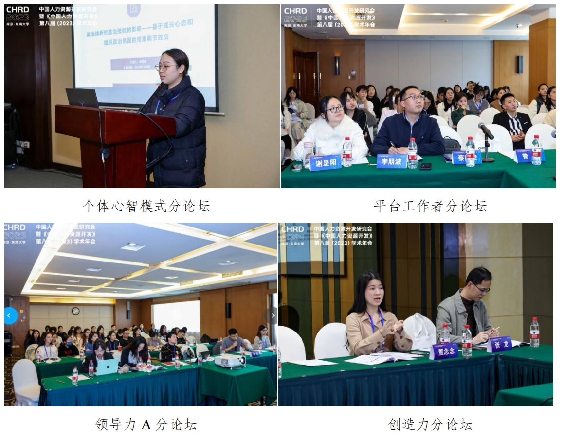 12月9日下午,本次大会组织安排了“领导力”、“劳动关系”、“员工创新行为”、“工作家庭关系”和“数字技术与工作设计”等24个主题的平行分论坛,共有125篇学术论文在现场分论坛进行展示交流与讨论。48位国内优秀青年学者分别作为主持人和评议人参与分论坛,为报告人给出了详实而富有建设性的意见。
