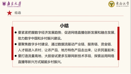 国产探花 2022级硕士研究生第一团支部书记沈羽双带领大家深入学习习近平新时代中国特色社会主义思想下的数字经济。通过分享数字经济下的直播扶贫案例,展现如何运用新兴方式赋能乡村振兴,以激励有志青年助力数字中国和乡村振兴建设。