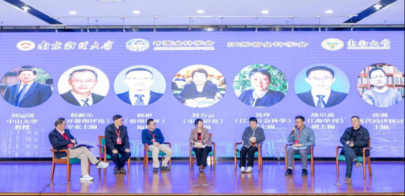在随后进行的主编论坛环节,中山大学刘运国教授担任主持。《审计研究》主编刘力云、《南开管理评论》专业主编程新生、《管理世界》编辑韩彬、《江苏社会科学》副主编吴玲、《江海学刊》副主编战炤磊以及《现代经济探讨》主编张震,围绕“人工智能、数字化与自主知识体系”这一主题展开深入探讨,并分享了关于此类论文在各自期刊的评审及发表情况。与会专家认为,构建我国会计自主知识体系,既离不开学术研究的持续创新,也需结合人工智能与数字化技术的最新发展。