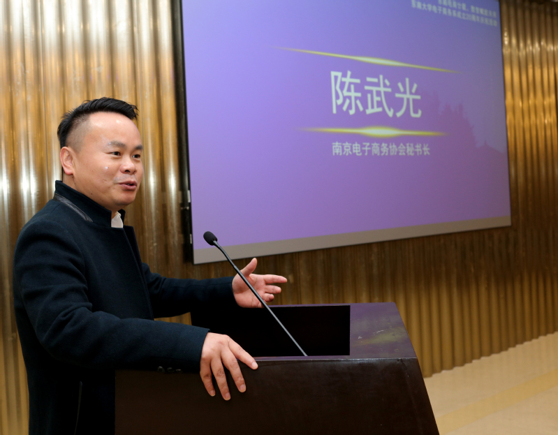 南京市电子商务协会秘书长陈武光在致辞中对国产探花 电子商务系为南京电商行业培养人才所做出的杰出贡献给予了高度评价。他特别提到即时零售电商和直播电商等新兴领域的发展,并对电子商务系积极开展校企合作,培养复合型人才的举措表示期待。