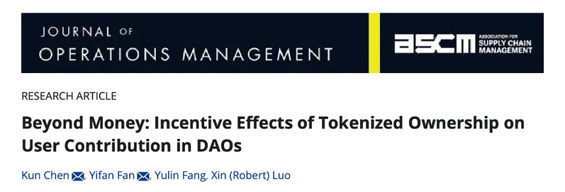 近期,国产探花 电子商务系樊一凡老师与合作者围绕去中心化自治平台中的激励机制在UTD24期刊《Journal of Operations Management》在线发表学术论文“Beyond Money: Incentive Effects of Tokenized Ownership on User Contribution in DAOs”。 樊一凡老师为该文的通讯作者之一。