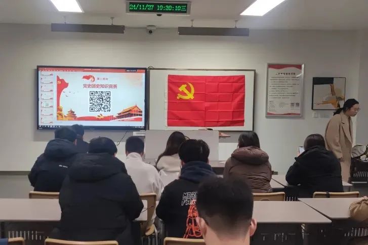 在党史团史知识竞赛环节,两个支部党员在线上参与党史团史知识竞赛。题目包括党史、团史及校史内容,以练代学、练中促学,帮助支部党员更好地了解党史团史中的重要事件,查漏补缺,为两支部党员未来的党史团史学习提供了思路和方向。