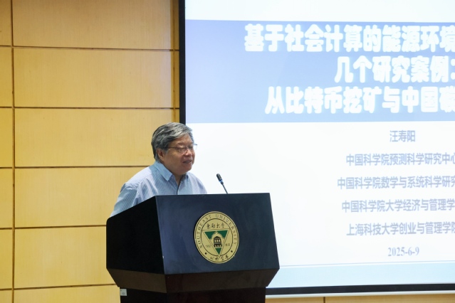 讲座伊始,汪寿阳教授以社会计算概论为切入点,为在场师生搭建起环境经济管理研究的认知框架,继而通过“区域贸易协定是否增加区域碳排放”“1.5度温升限制对中国经济社会的影响”“光伏产业在减贫中的作用”“海洋运输与公海碳排放”“2060年中国碳中和技术路线图的可行性”“中国十大菜系与CO₂排放的关联”“AI对电力需求及碳排放的影响”这7大案例,深度剖析比特币挖矿与中国碳排放的内在联系,不仅揭露了中国比特币挖矿行业惊人的能源消耗与碳排放现状,更展现了中国多领域对碳排放的深远影响。