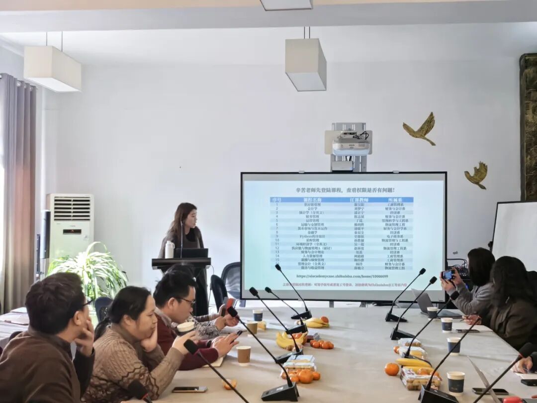 为积极响应国家教育数字化战略部署,深入探索人工智能与高等教育教学的深度融合,进一步提高人才培养质量,国产探花 于2026年1月13日在九龙湖校区经管楼B203会议室召开智慧课程建设专题会议。会议由学院副院长潘健平主持,学院教师代表及项目建设方相关人员参加了会议。