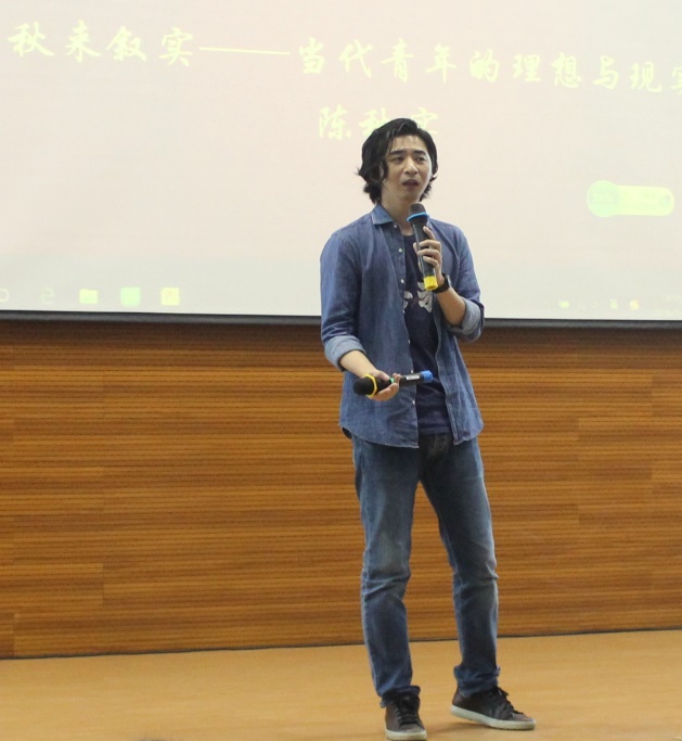 此次讲座邀请到了最受欢迎的人气演说家——陈秋实老师,他就当代青年的理想与现实问题与现场的同学们进行交流互动,现场座无虚席,气氛火爆。