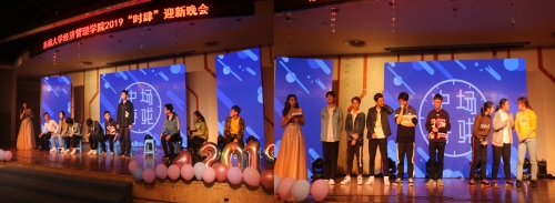 在晚会的抽奖环节,伴随着微信墙的滚动,有两位幸运观众抽得我们的奖品。晚会最后,2019级本科生辅导员满雪颖老师和学生会的部长们为大一新生带来了惊喜节目。