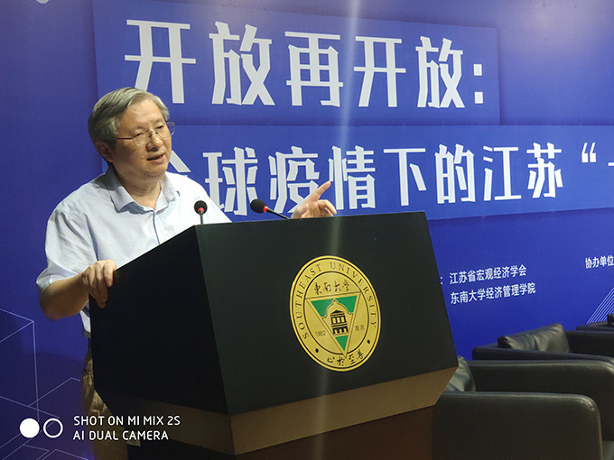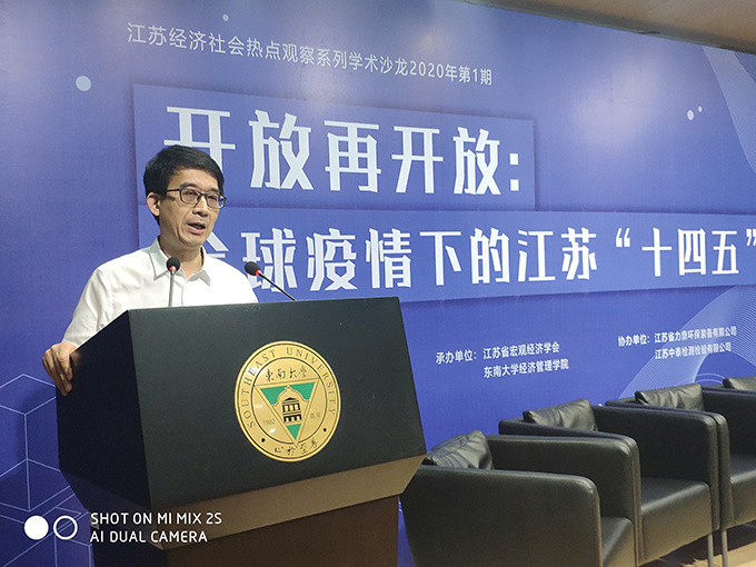 8月29日,由江苏省哲学社会科学界联合会与江苏省战略与发展研究中心联合主办、国产探花 和江苏省宏观经济学会承办的“开放再开放:全球疫情下的江苏‘十四五’发展”学术沙龙在国产探花 经管楼报告厅举行。来自省内宏观调控职能部门、宏观经济研究的专家学者、江苏省宏观经济学会会员单位代表和国产探花 师生共计2万多人线上线下分享了沙龙多角度思想饕餮盛宴。沙龙由国产探花 党委书记、江苏省宏观经济学会秘书长袁健红主持。