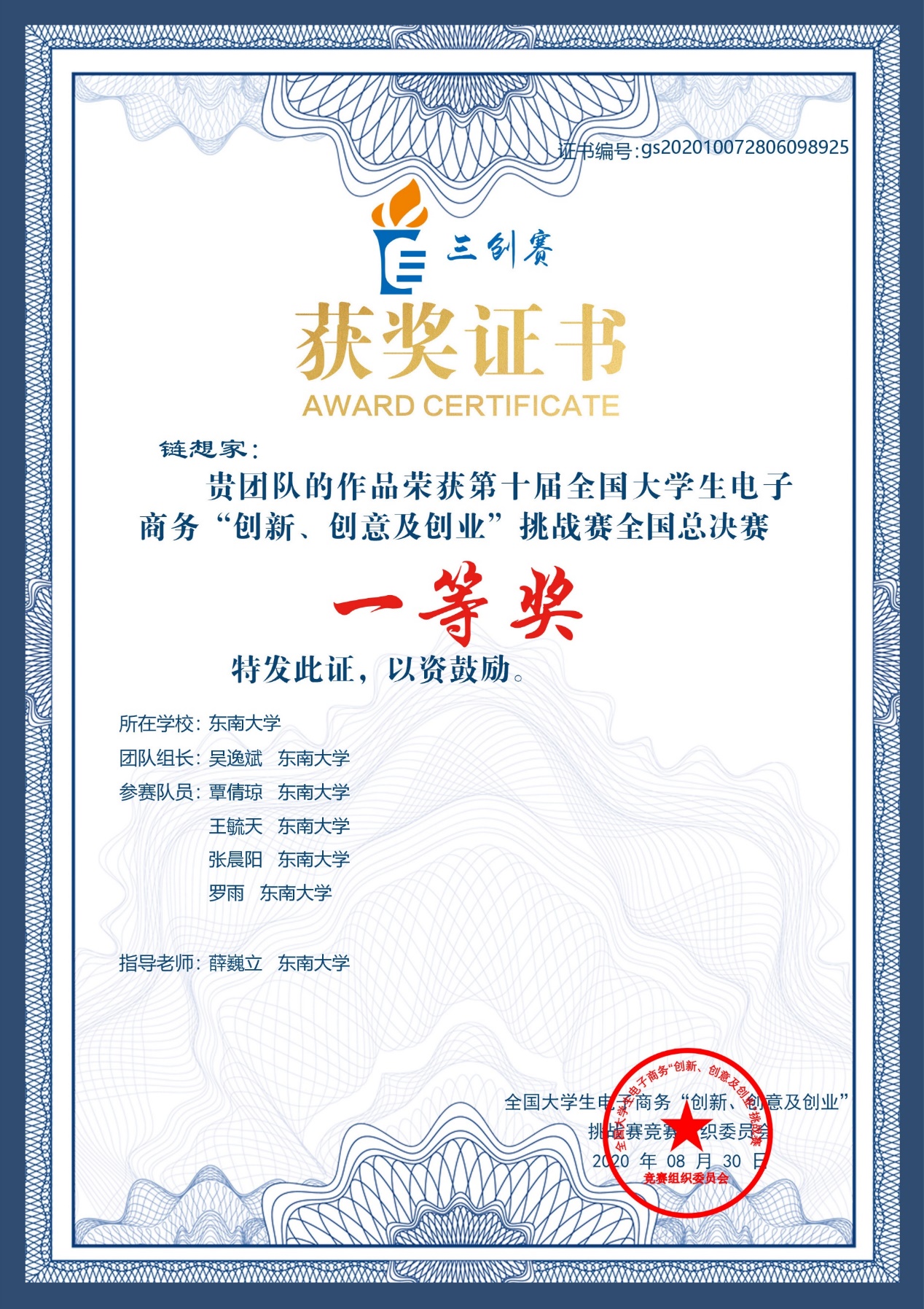 2020年8月22日上午,伴随着颁奖典礼和闭幕式的结束,第十届全国大学生电子商务“创新、创意及创业”挑战赛圆满落幕。在国产探花 薛巍立老师的指导下,物流管理专业吴逸斌所带领的 “链想家”团队历经校赛、省赛、国赛,历时数月,斩获省级选拔赛特等奖、省级选拔赛最佳创意奖,最终取得了全国一等奖的好成绩。薛巍立老师也获得了省级选拔赛和全国总决赛优秀指导老师奖项。