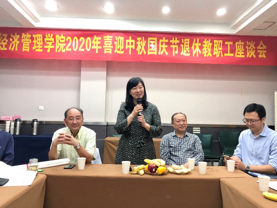 金秋九月,丹桂飘香,恰迎中秋国庆佳节,学院党委书记袁健红、副院长浦正宁等党政领导代表看望了学院退离休教职工,并与老同志们一起在榴园宾馆召开2020年迎中秋国庆座谈会。校退离休协会理事长程明山、名誉理事长龚乐年以及学院二十多位退离休老教师出席了此次座谈会。会议由校退协理事、院退离休党支部书记王文武主持。