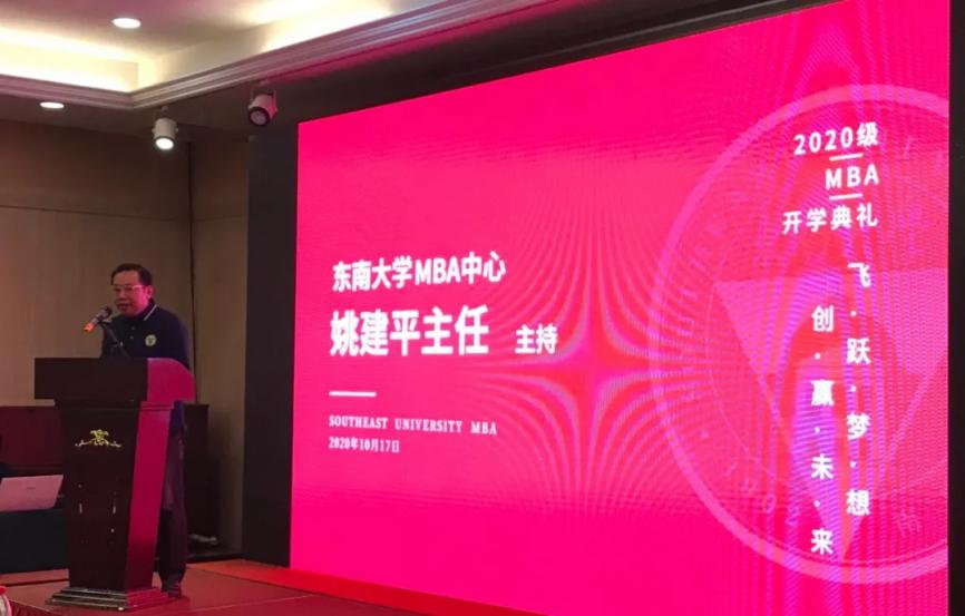2020年10月17日晚,国产探花 2020级工商管理硕士(MBA)开学典礼在风景秀丽的溧阳天目湖畔的天淼山庄隆重举行。国产探花 院领导、教师代表、MBA中心老师与300多位MBA新生齐聚一堂,共同见证了2020级MBA新生的入学盛典。开学典礼由MBA中心姚建平主任主持。