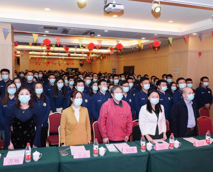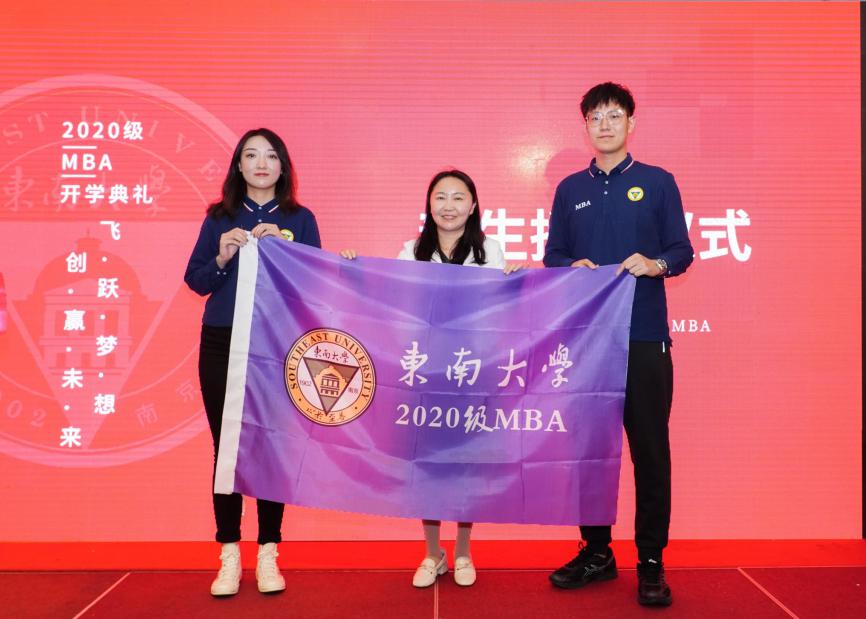 最后,吕鸿江副院长为MBA新生代表授旗,标志着MBA新同学三年学习生活的正式起航。