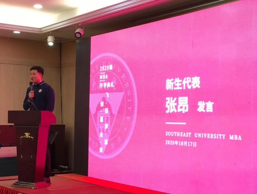 张昂同学作为新生代表发言。他说,我们应当积极融入MBA学习生活之中,寓学于乐,学以致用,搭建好通向美好未来的阶梯,构筑起迈向事业成功的瞭望塔。他代表全体新生抒发了对学习的渴求,对成就未来的希冀。