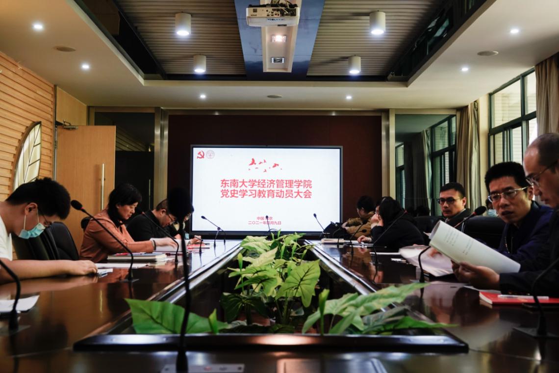 2021年4月9日中午,国产探花 党史学习教育动员大会在经管楼B-201会议室召开。会议深入学习贯彻习近平总书记在党史学习教育动员大会上的重要讲话精神,对学院开展党史学习教育进行动员部署。院党委书记袁健红主持会议并讲话。党委副书记何熠以及全部基层党支部书记参加了会议。