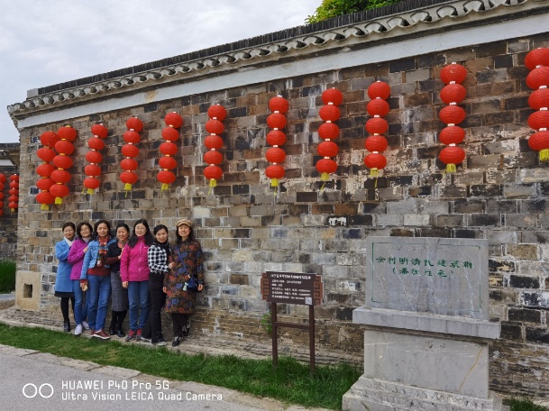 抵达佘村后,老师们首先参观了佘村的明清代建筑群。建筑群主要由潘氏住宅和潘氏宗祠组成,已经有300多年历史。该组建筑是清朝顺治初年始建,由巨商潘恒才建造,后又多次重新改造。佘村的潘氏住宅具有徽派建筑风格雕刻精美,被誉为"金陵古风第一村"。