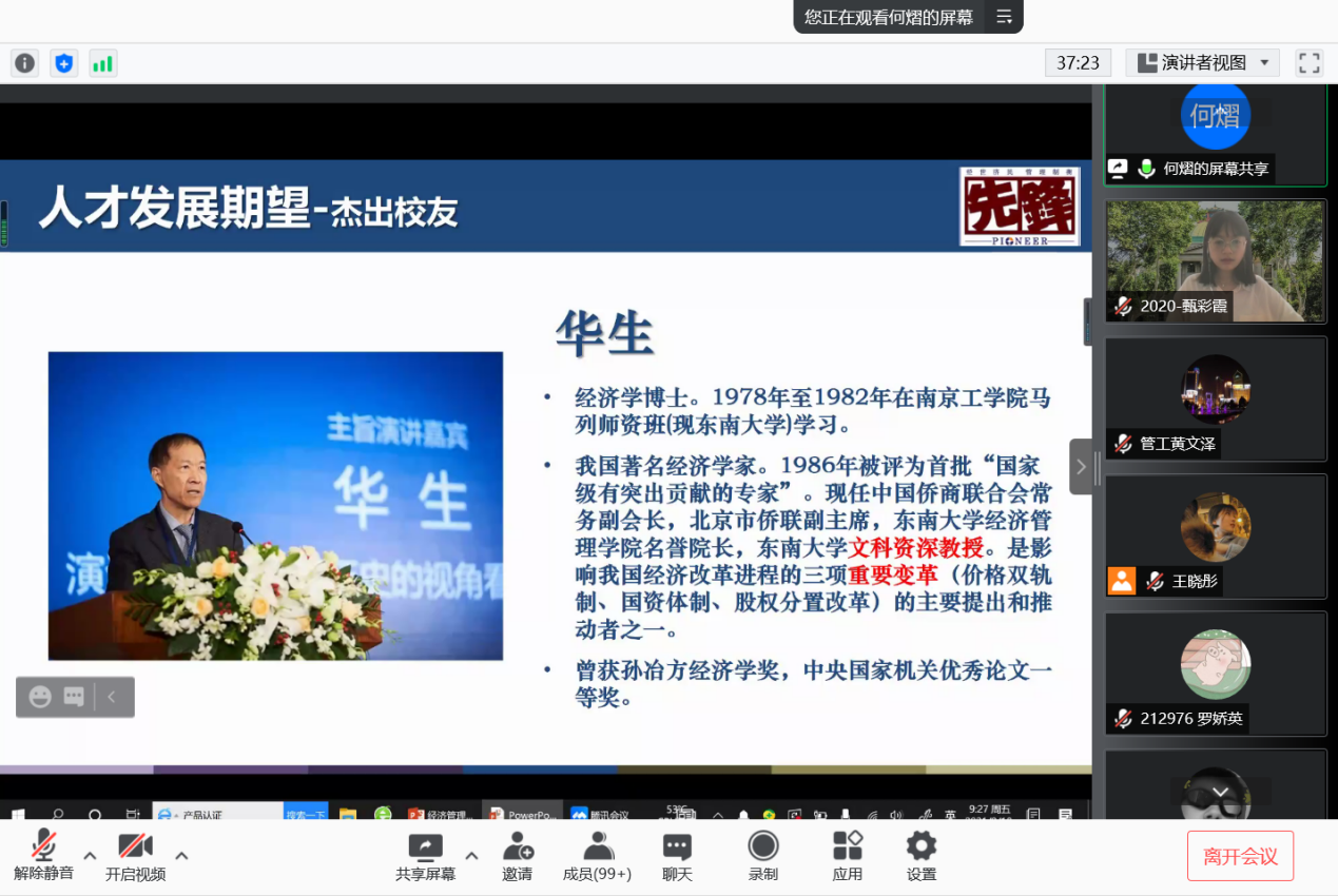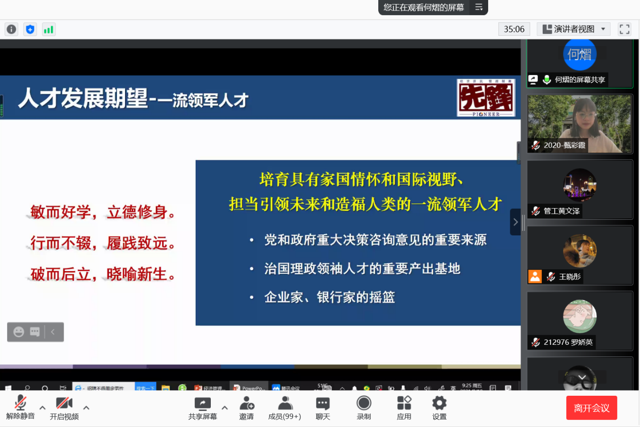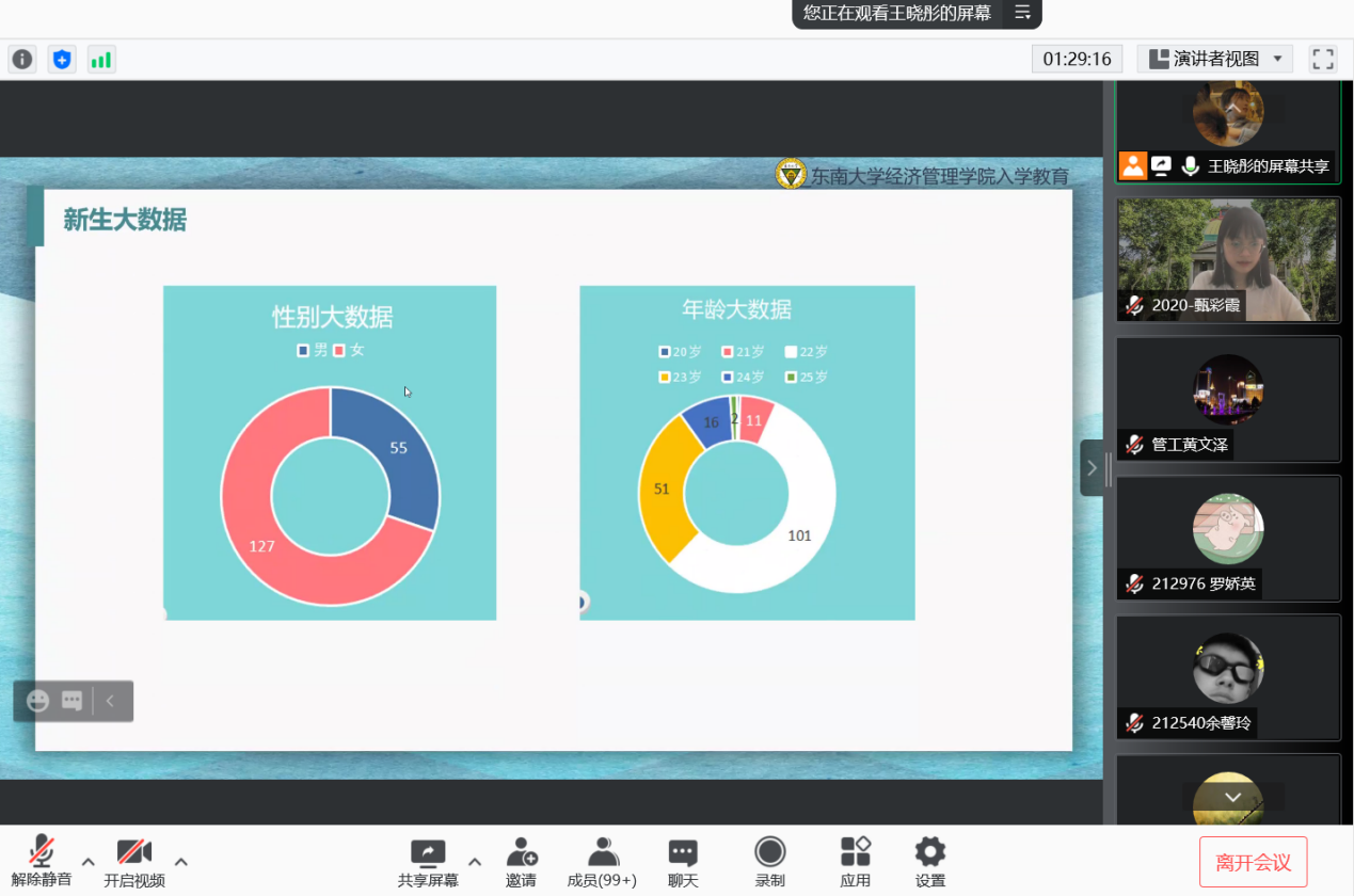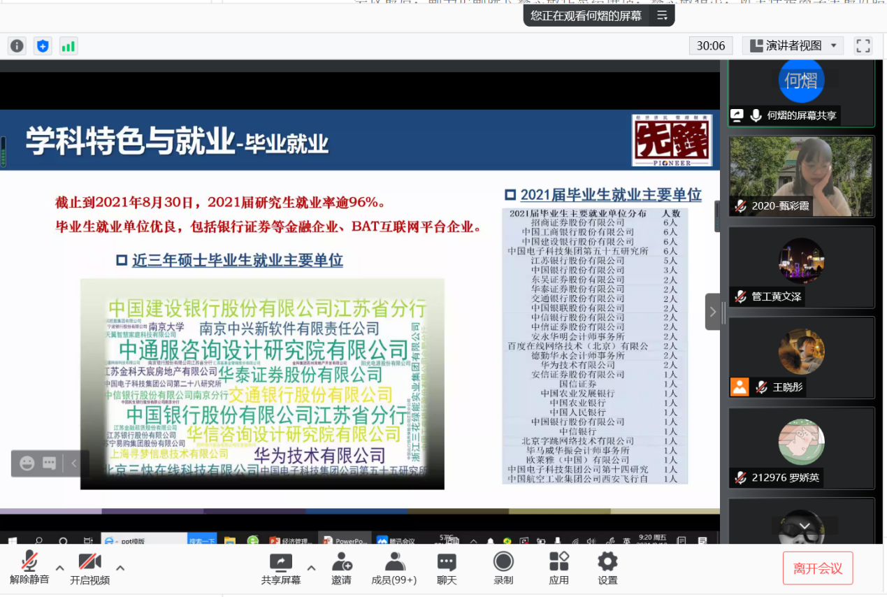 2021年9月10日上午9时,恰逢教师节,国产探花 研究生新生入学教育如期举行,2021级182位硕士研究生及17位秋季入学的博士研究生在云端与东大经管相约。