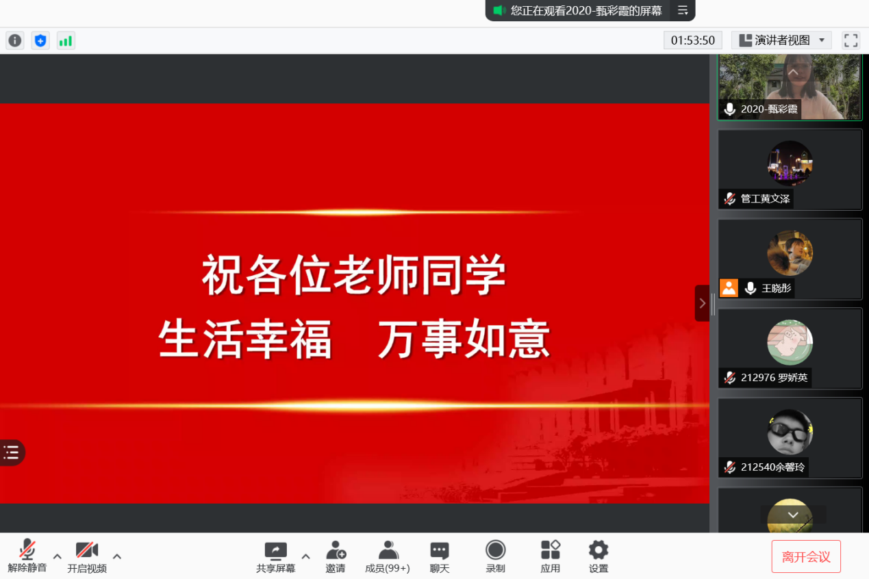 最后,张向阳老师、虞斌老师、张颖老师、杨勇老师等依次发言,对各位同事表达了节日的祝福,对同学们提出了殷切期盼。