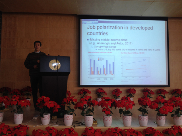 The forefront talk on "International Trade and Income Inequality”, lectured by professor Taiji Furusawa who comes from Hitotsubashi University has successfully held in the auditorium on 1st floor of the school of economic and management in March 11st. Professor Taiji hold several posts as the general secretary of APTS, permanent director of the Japanese Institute for International Economics and etc.