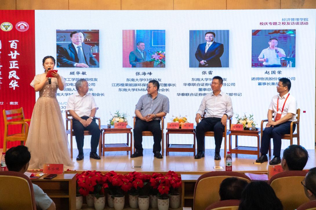 During the following interview among alumnus, Li Lianshui and Wu Yingyu, new entries in the year 1977 from Nanjing Institute of Technology (NIT), and Chao Daijian, the new entry in the year 1977 from Cadre Graduate Course concerning Systems Engineering (Foreign Economy), shared their most unforgettable experiences in their teens and the understanding of “Leading talents”, encouraging students to carry on the responsibility history has bestowed upon us, inherit the spirit of SEU, and become the “Leading talent” of the next generation. Cao Jie, the new entry in the year 1996, and Yao Hong, the new entry in the year 2006, showed everyone how their mother school influenced them in their career and business. Gu Huamin, the new entry in the year 1980 from NIT and a member of MBA courses in 1990, Zhang Haifeng, the new entry in the year 1993 from SEU and a member of EMBA courses in 2013, Zhang Lei, the new entry in the year 1998, and Zhao Guorong, the Chairman and General Manager of Nuode Logistics Co., Ltd, together gave their sincere advice to young students, heartening them to comprehensively develop themselves, practice their innovative ability and entrepreneurship, striving to be the compound leading talent.