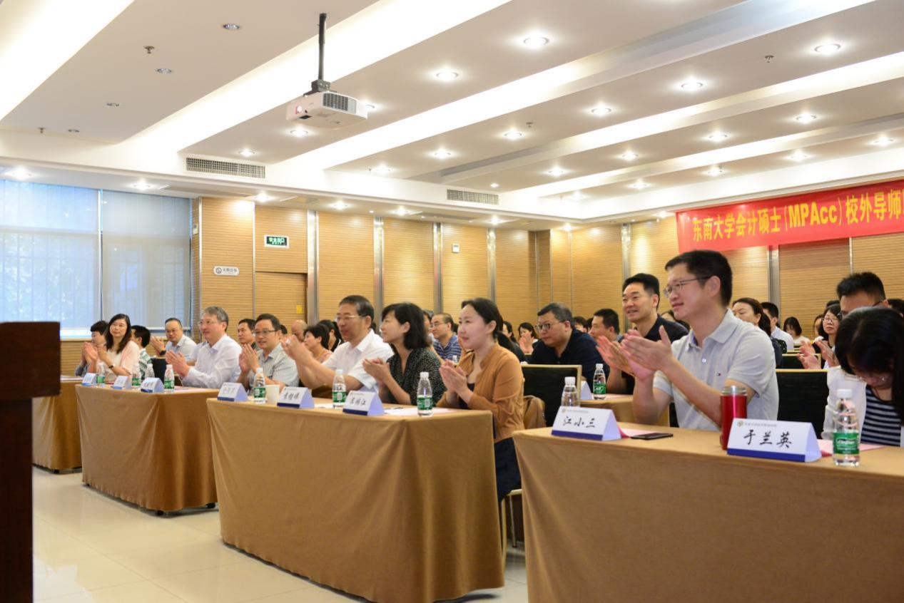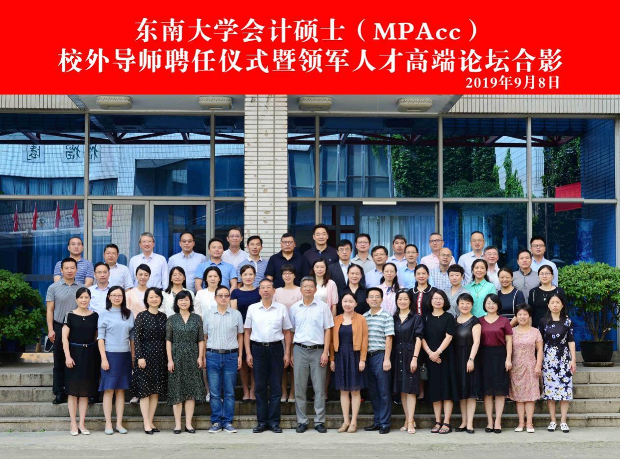 On the morning of September 8, the appointment ceremony of external supervisors of Southeast University Master of Professional Accounting (MPAcc) and the high-end forum of leading talents were held at the Sipailou campus of Southeast University. Prof. Jin Baosheng, Vice President of Southeast University, Prof. Yuan Liudi, Vice Dean of Graduate School, Prof. Lv Hongjiang, Vice Dean of School of Economics and Management, Prof. Chen Zhibin, Head of Department of Finance and Accounting of the School of Economics and Management, 54 external supervisors and the students of MPAcc of Grade 17 and 18 attended the meeting.