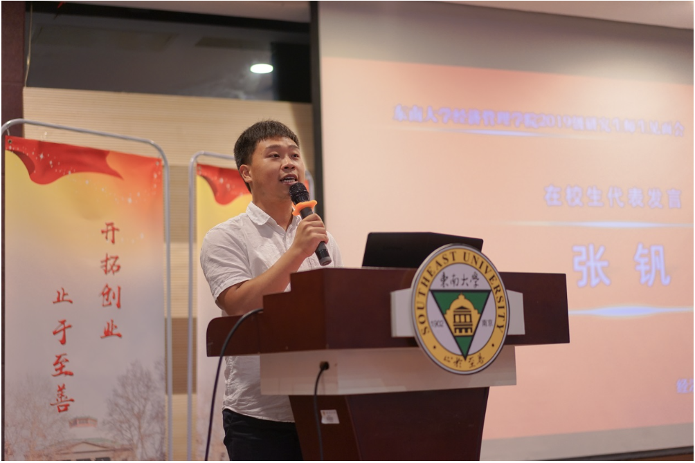 Zhang Fan, a 2018 graduate student, delivered a speech