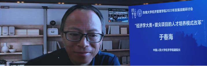 Yu Chunhai, Vice Dean of the School of Economics at Renmin University of China, gave a detailed presentation on the recent attempts and reforms in undergraduate teaching at Renmin University. The cultivation model of Economics major plus outstanding innovation provided a valuable reference for the improvement of our school's future talent cultivation.