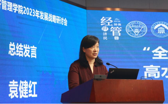Yuan Jianhong, the Secretary of the Party Committee of the School of Economics and Management, summarized and made a speech