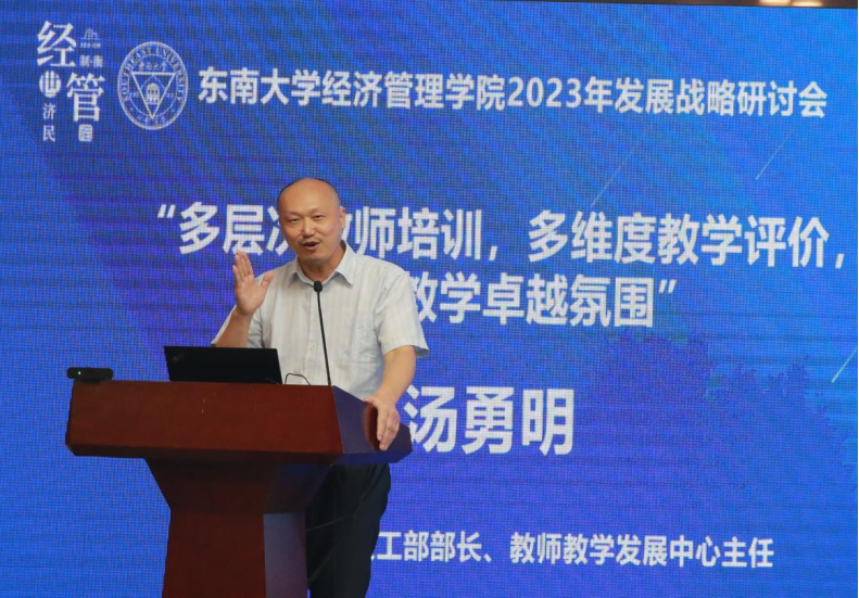 Tang Yongming, Minister of the Faculty and Staff Department and Director of the Teacher Teaching Development Center at Southeast University, gave a report